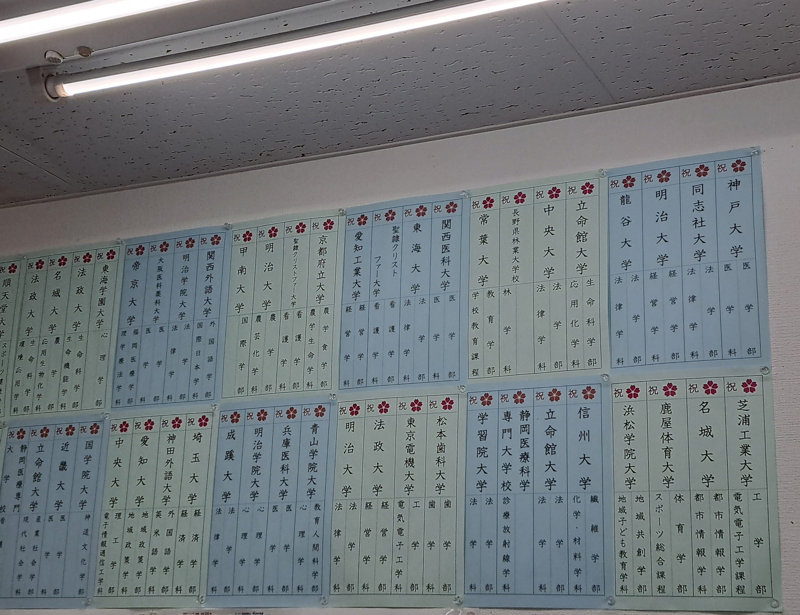教室には、これまでの先輩たちの合格実績が掲示されています。